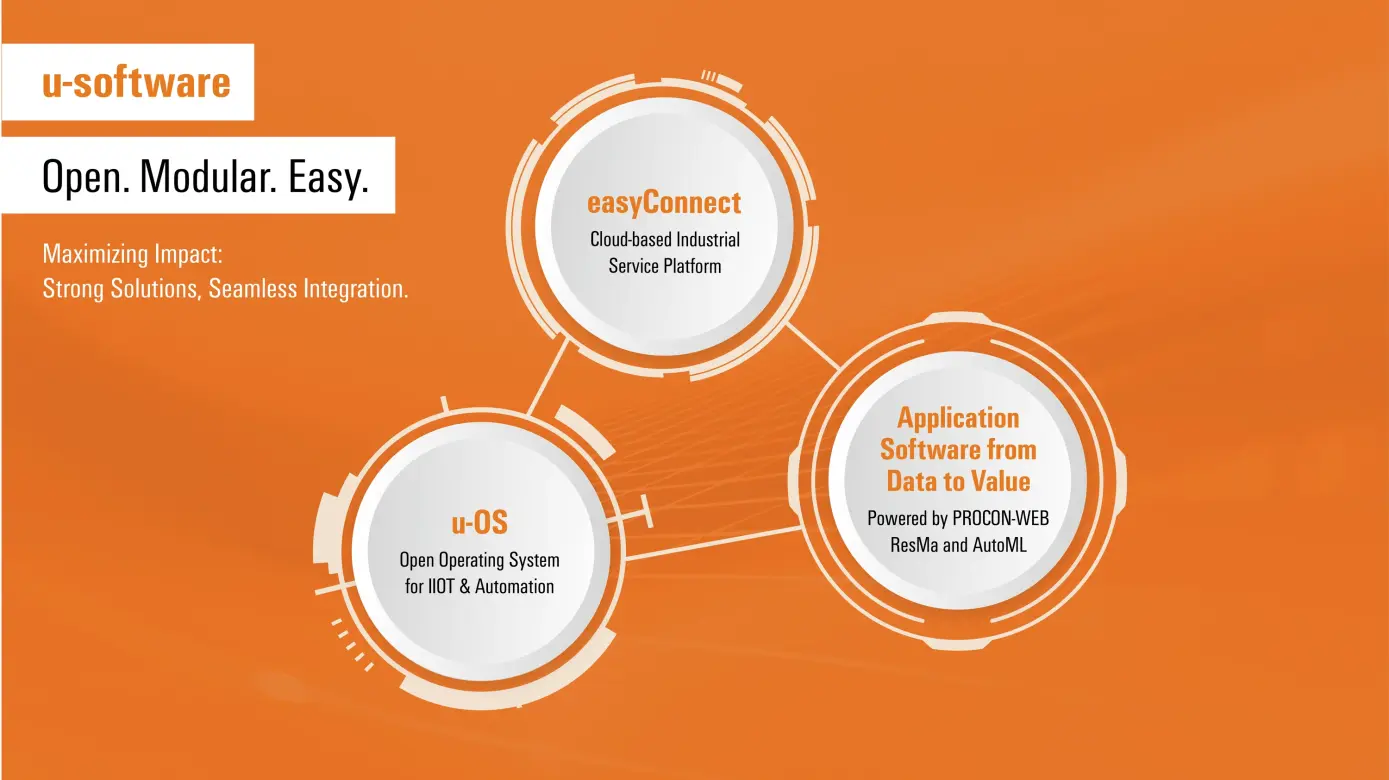 포괄적인 u-소프트웨어 포트폴리오는 엣지 플랫폼 'u-OS', 클라우드 플랫폼 'easyConnect', 그리고 이를 기반으로 구축되는 포괄적인 사용자 소프트웨어의 세 부분으로 구성됩니다.