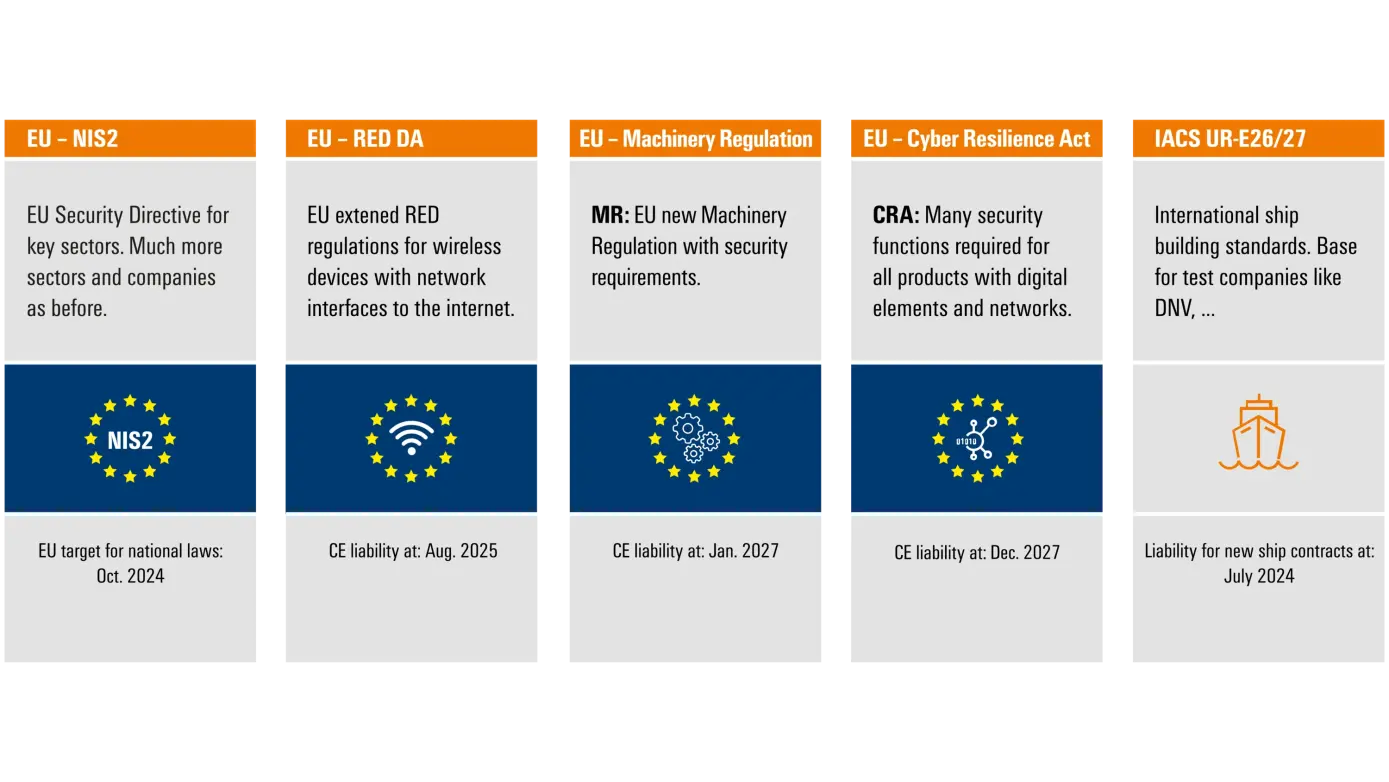 오늘날의 디지털 세상에서 산업 보안은 자동화 분야의 모든 기업에게 필수적인 주제입니다. 사이버 공격은 지속적으로 증가하고 있습니다. 이러한 위협과 사이버 복원력 법, NIS 2, RED DA 또는 EU 기계 규정과 같은 법적 요건의 강화에 비추어 볼 때, 산업 보안을 면밀히 검토할 때가 되었습니다.