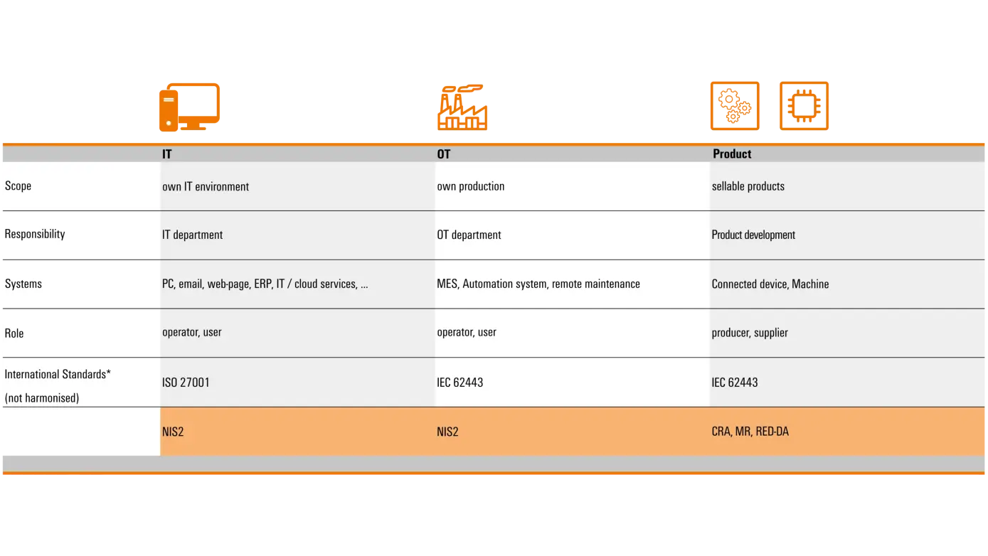 NIS2는 직원 수가 50명 이상이거나 매출액이 1,000만 유로 이상인 많은 산업에 적용됩니다. 이는 제품 공급업체를 포함한 IT 및 OT(운영 기술) 부서의 보안에 적용됩니다.